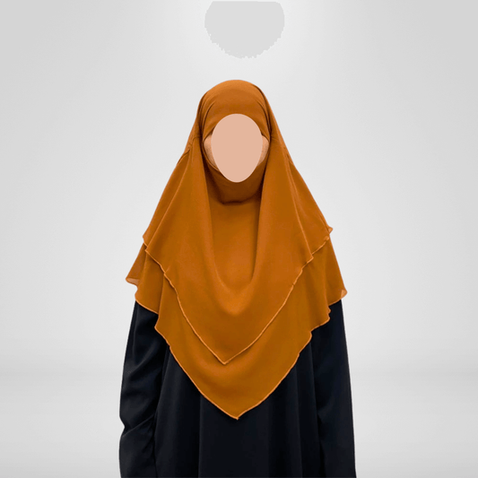 Medium Length Double Layer Chiffon Khimar - Brown