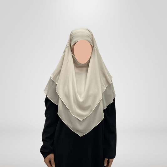 Medium Length Double Layer Chiffon Khimar - Cream