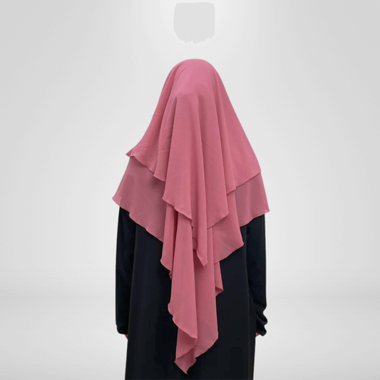 Medium Length Double Layer Chiffon Khimar - Pink